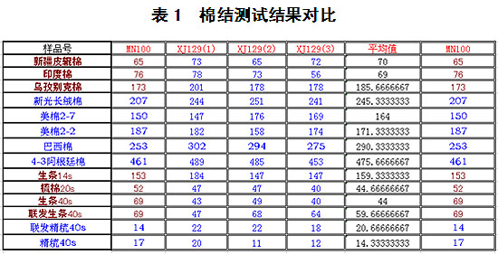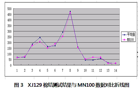 結論:XJ129棉結測試儀測試結果和USTER公司MN100測試結果相當。