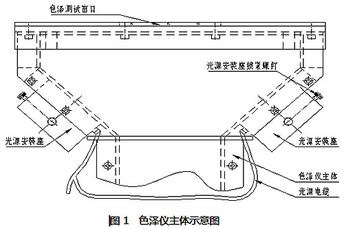 在色澤儀電控箱斷電的情況下參照圖1,將光源安裝座鎖緊螺釘(兩個,不需要擰掉)全部擰松。就可用從色澤儀主體上拿下光源安裝座,光源就安裝在光源安裝座中,如圖2所示。